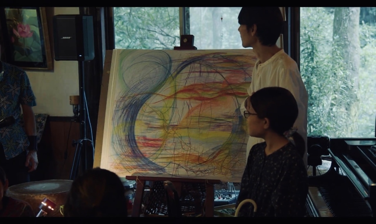 画家 MATSUSHIMA Riekoとすべての出演者がコラボレーション。楽器作りワークショップでMY楽器を作ったお客さんも参加。